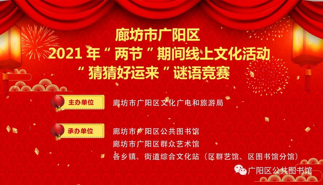 廊坊市广阳区2021年“两节”期间线上文化活动二“猜猜好运来”谜语竞赛活动