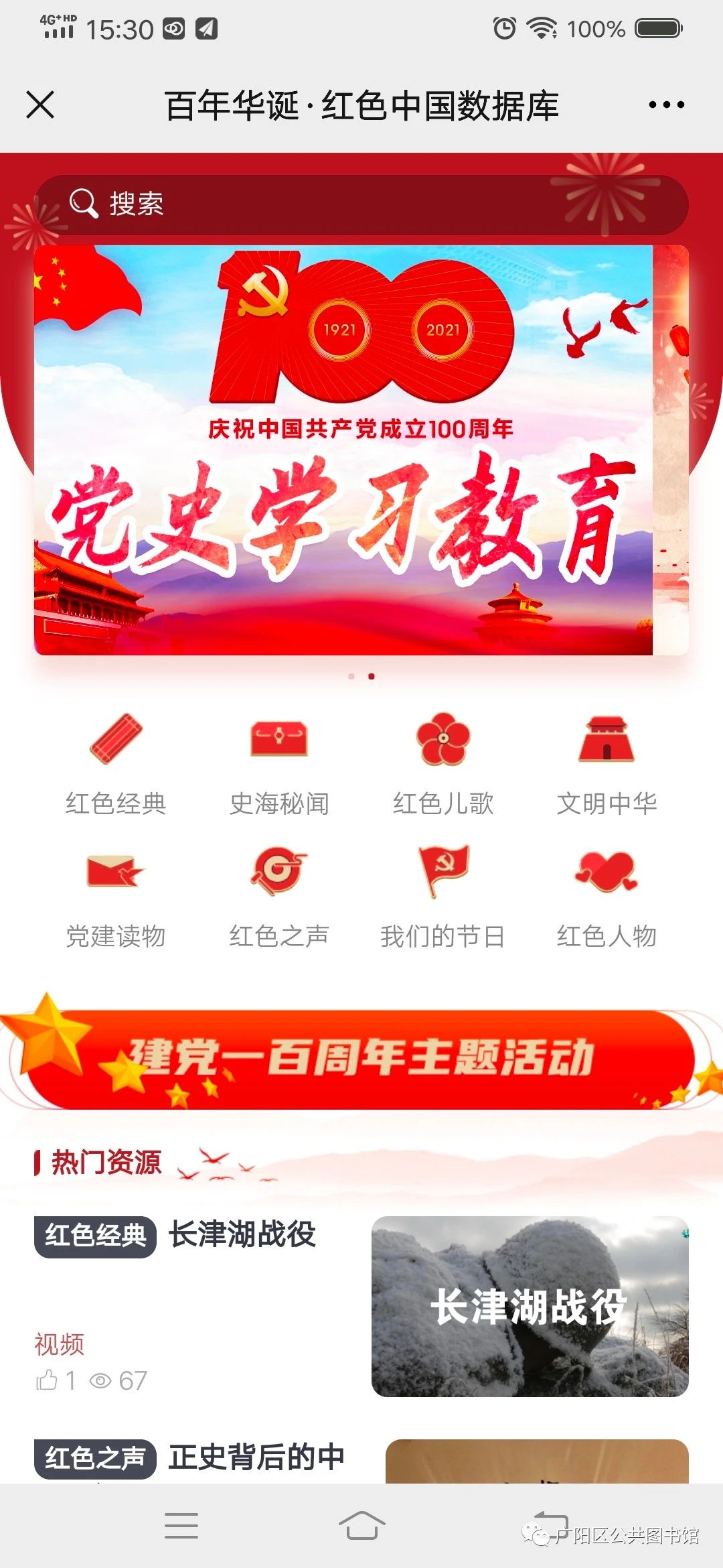 为充分发挥广阳区图书馆区级爱国主义教育基地的作用,积极配合正在开展中的四史学习教育活动,向广大干部群众提供丰富的学习资料,广阳区公共图书馆于今日在微信公众号开通专题数据库“四史学教专区”,以促进学习活动的深入开展。
