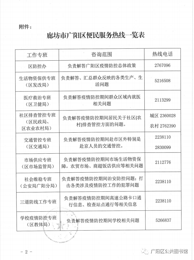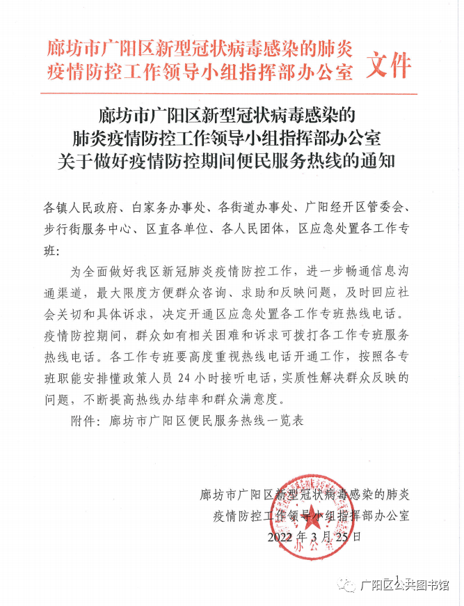 广阳区疫情防控期间便民服务热线